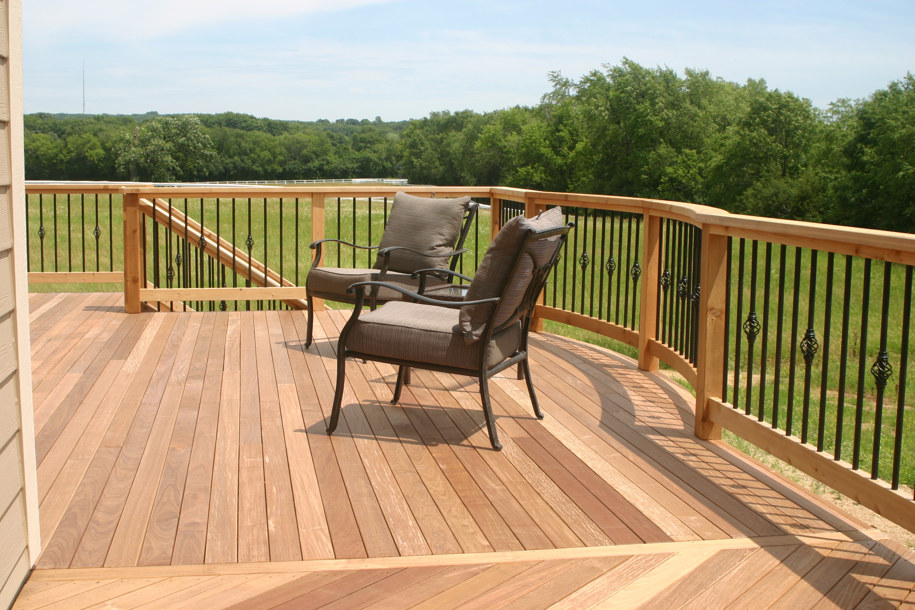 We use several different decking materials and they all are great depending on what you’re looking for and how you’ll use the new deck. Composite decking is very standardized so all the boards look very similar and you won’t find any natural cracking, splitting, or splintering. They usually last longer and weather better after time. Hardwood decking is also great for its durability and natural look. Hardwood decking also will have the look and feel of real wood and it will weather and fade as it normally would. It is easy to maintain and it will last a long time. Softwood decking like redwood and cedar are less common but they provide an excellent color and finish that the other styles cannot.